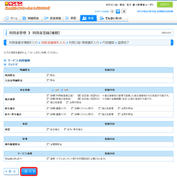 | 「でんさいネットへ」 | でんさいネット連携サービスの利用が可能 (でんさいネット側の設定が必要) |